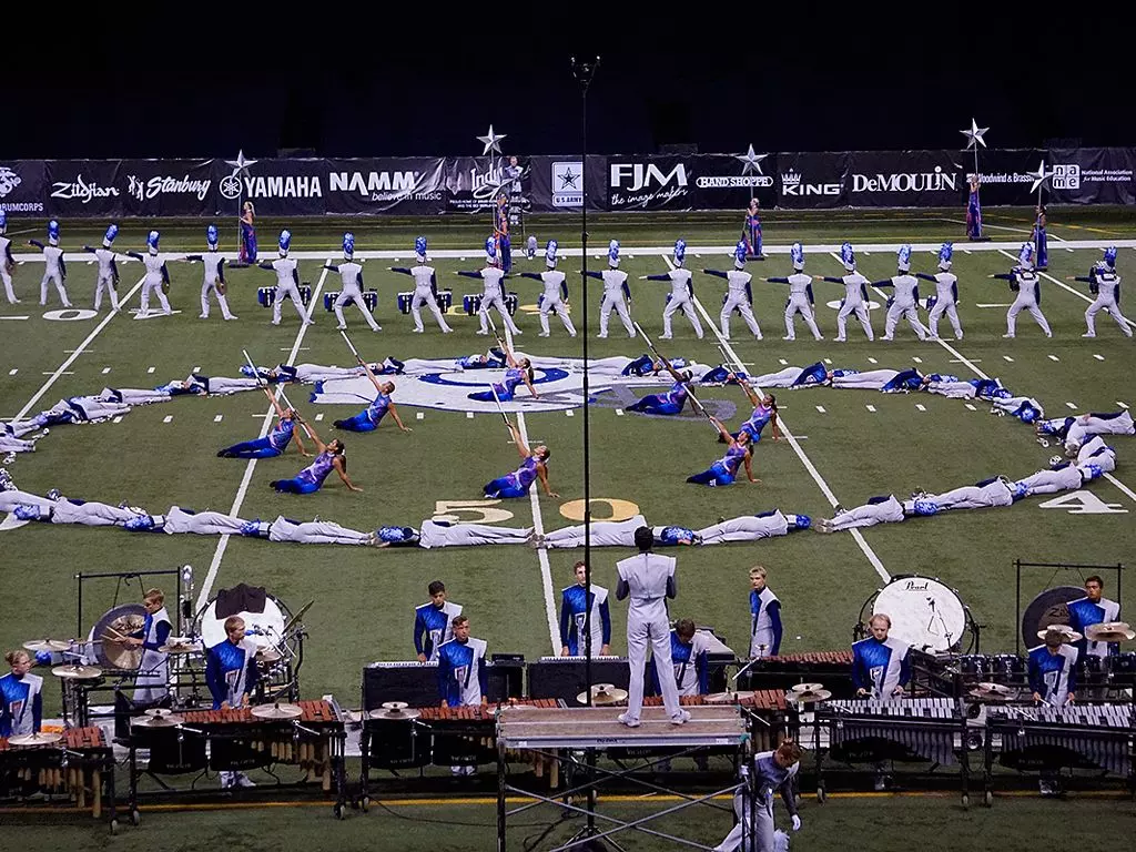 High School Marching Bands: Talented student musicians and color guards take the field to perform their precision-crafted routines.