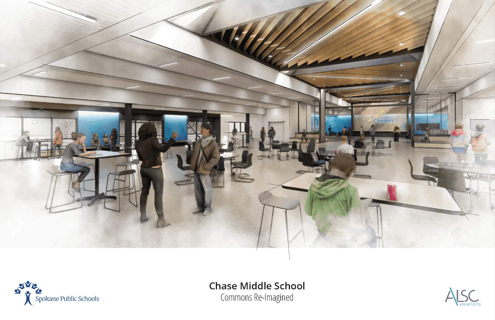 Chase Middle School will receive a combined nutrition and learning commons — a space that doubles as a cafeteria and library, open to both students and the public.